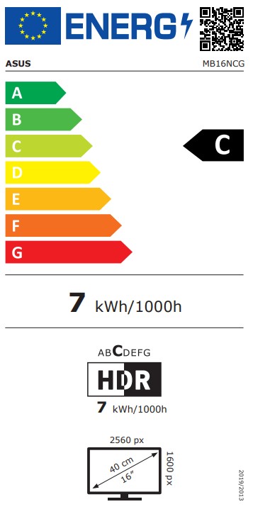 ASUS Monitor 16 inches MB16NCG IPS WQXGA USBC mHDMI