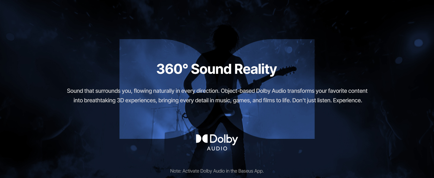 - Bose poolt toodetud heli: Kogege Baseuse seni parimaid mürasummutusega kõrvaklappe, mille Sound by Bose pakub ekspertide poolt häälestatud heli ja Dolby Spatial Audio't, mis tagab kaasahaarava 360° heli. Nautige rikkalikke detaile, kristallselgust ja sügavaid, tasakaalustatud helisid - kuulake iga nooti täpselt nii, nagu artistid seda ette nägid.